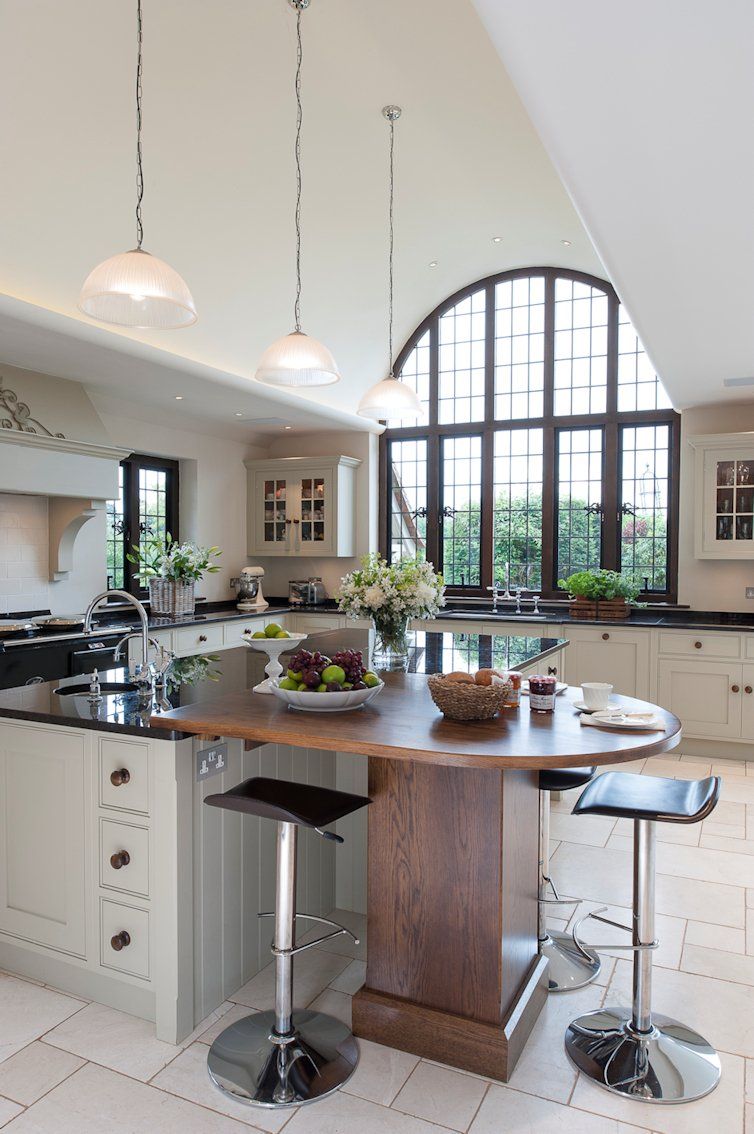 The new kitchen space was created from what was a row of stables and outbuildings that were reformed and joined back to the main house with a connecting extension. The focal point of this room is the large arched window led from the barrel-vaulted ceiling.