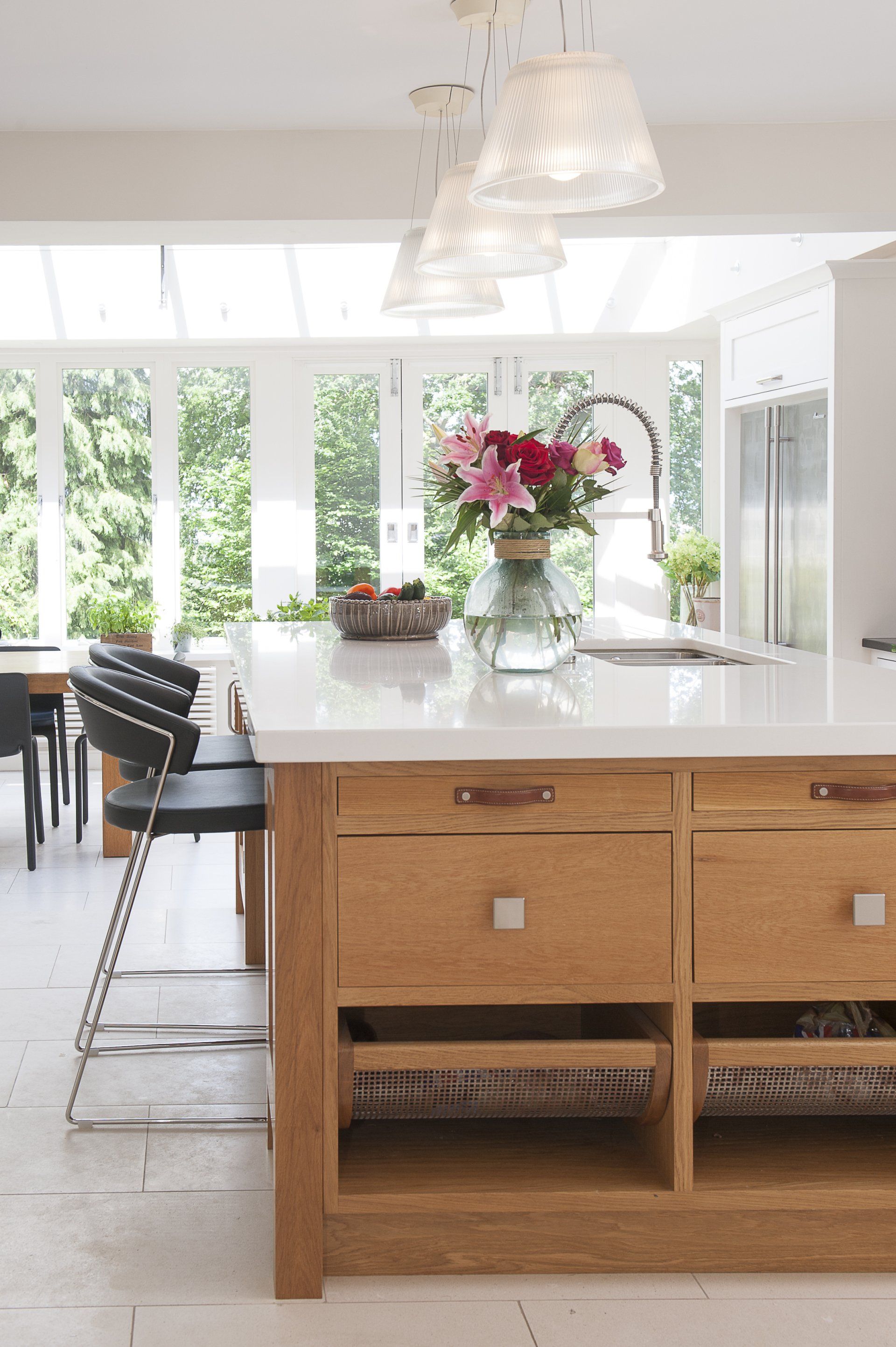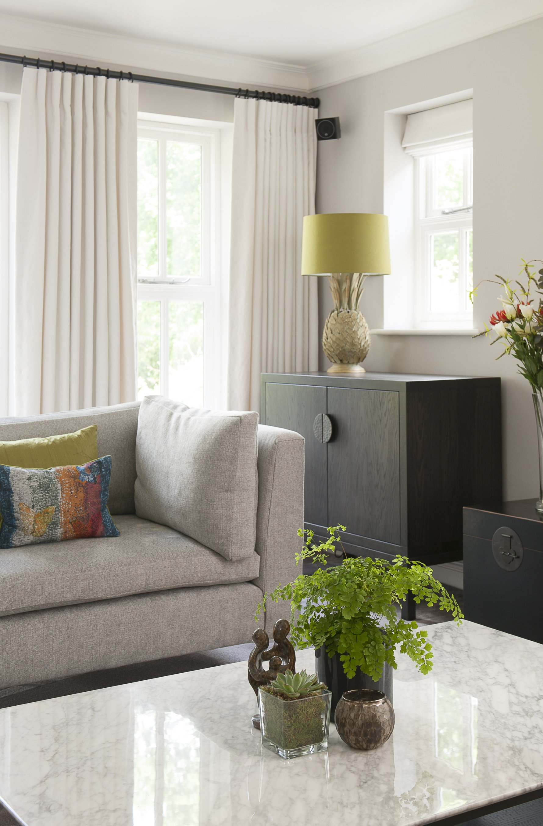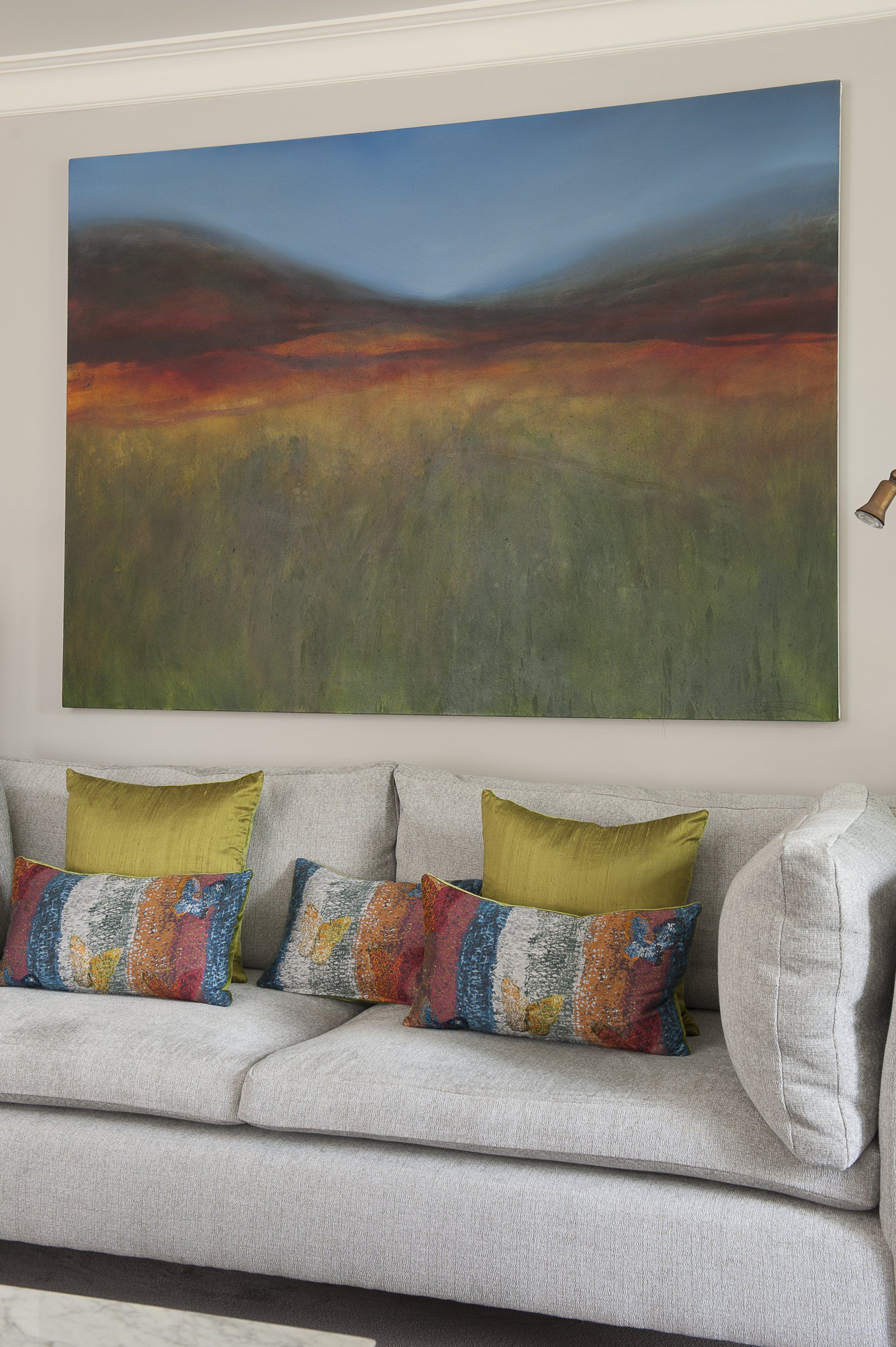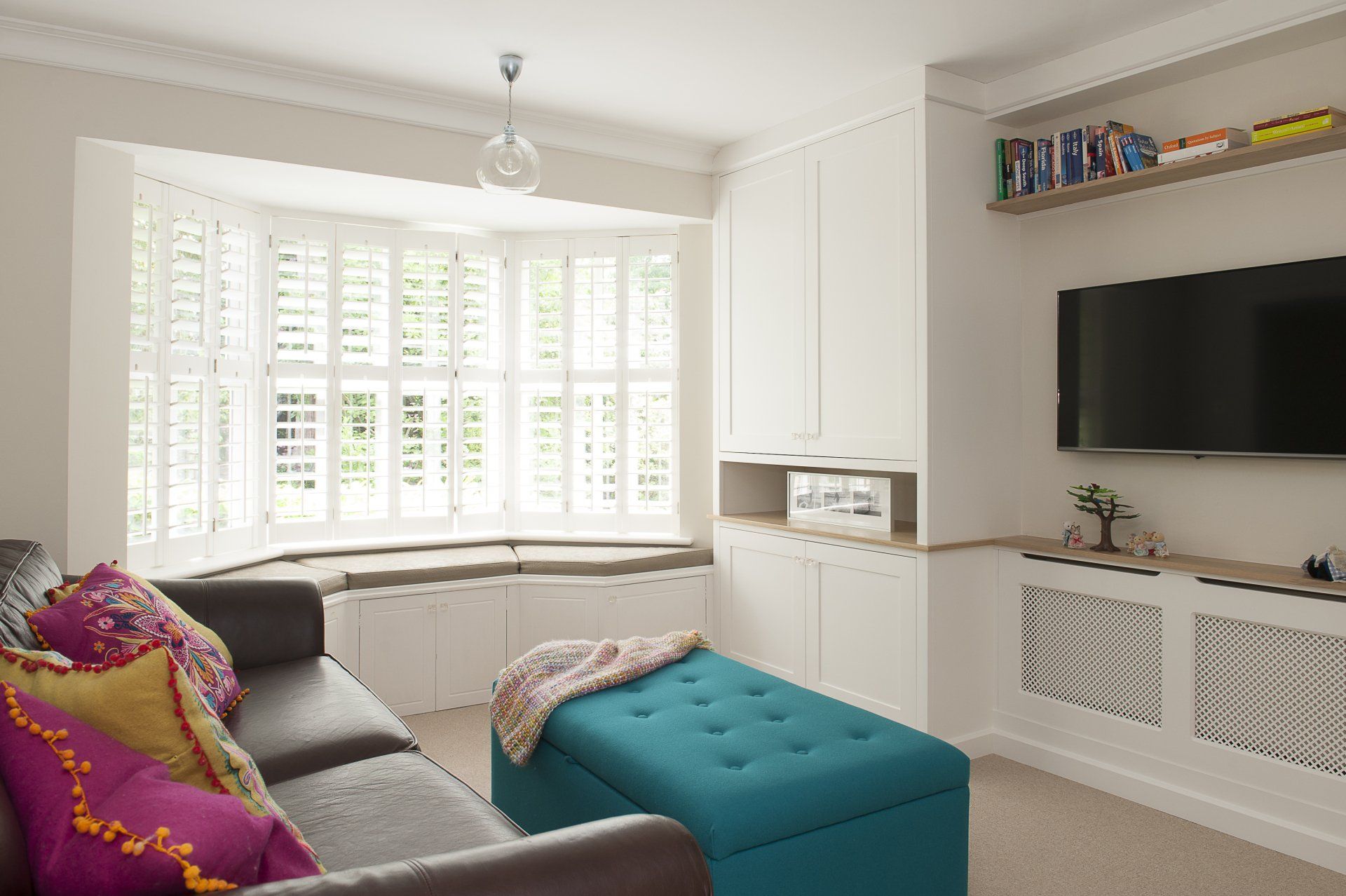 The property was extended by adding a light filled conservatory to enlarge the original kitchen to create a spacious kitchen dining room for entertaining, with space for a large table and chairs and a spiral wine cellar. We started with the full bespoke kitchen design, working from plans. Other rooms we have designed are the main living room with a scheme based around the client’s existing artworks, Hall, cloakroom and family TV room. We have more recently evolved the family admin/organisation area into a drinks station with new joinery and integrated wine and drinks fridges and display for glasses and wine tasting equipment and gadgets. Always lovely to return and update our projects.